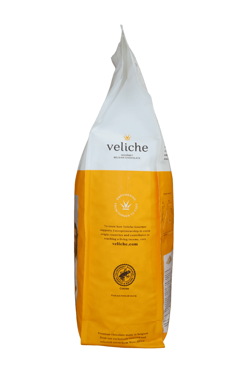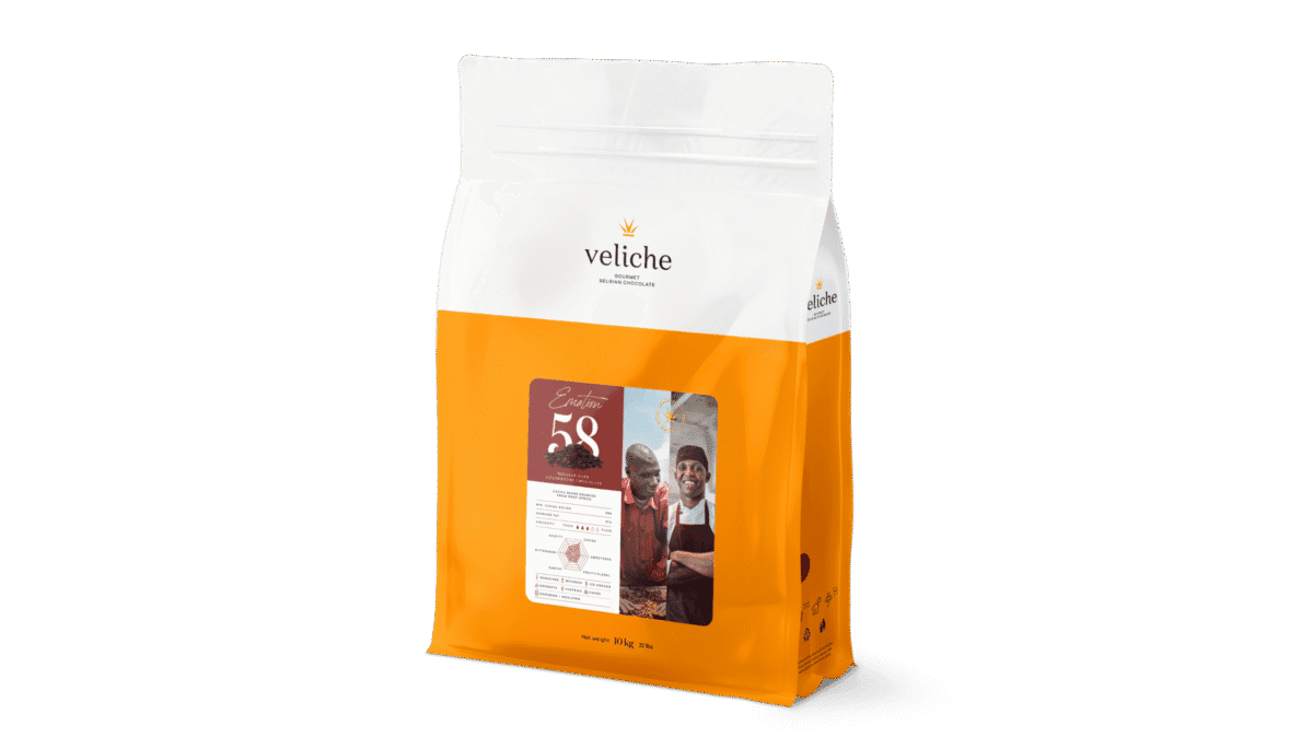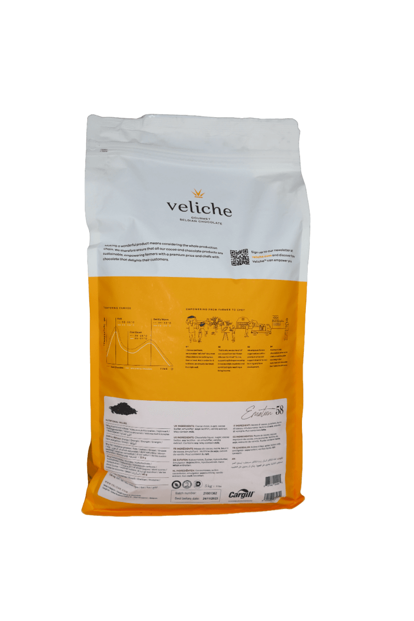 Nasza ciemna czekolada cukiernicza Veliche DARK EMOTION 58% to idealny wybór dla prawdziwych pasjonatów słodkości. Dzięki delikatnemu smakowi kakao i doskonałym walorom wizualnym, ta czekolada stanowi niezastąpiony dodatek do Twoich wyrobów cukierniczych.