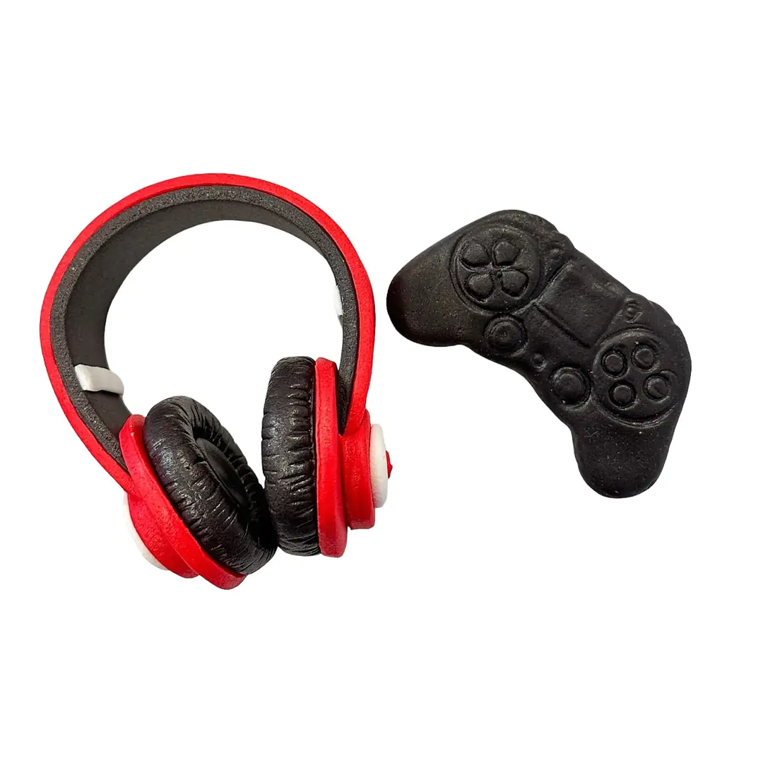 Są z nami fani gier komputerowych? Jeżeli tak – ten zestaw dekoracji dla gracza będzie dla nich idealny! Czarny pad do gry i czerwono czarne słuchawki zrobią wrażenie na każdym, kto je zobaczy. Na słodkich dekoracjach możemy zauważyć liczne wytłoczenia, które dodają realizmu i zapadają w pamięć. Świetnie sprawdzą się na przyjęcia urodzinowe i nie tylko!