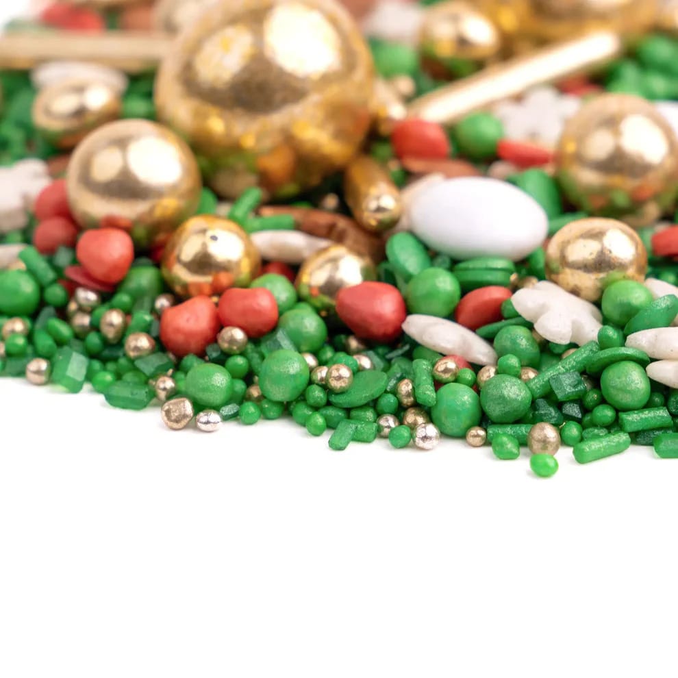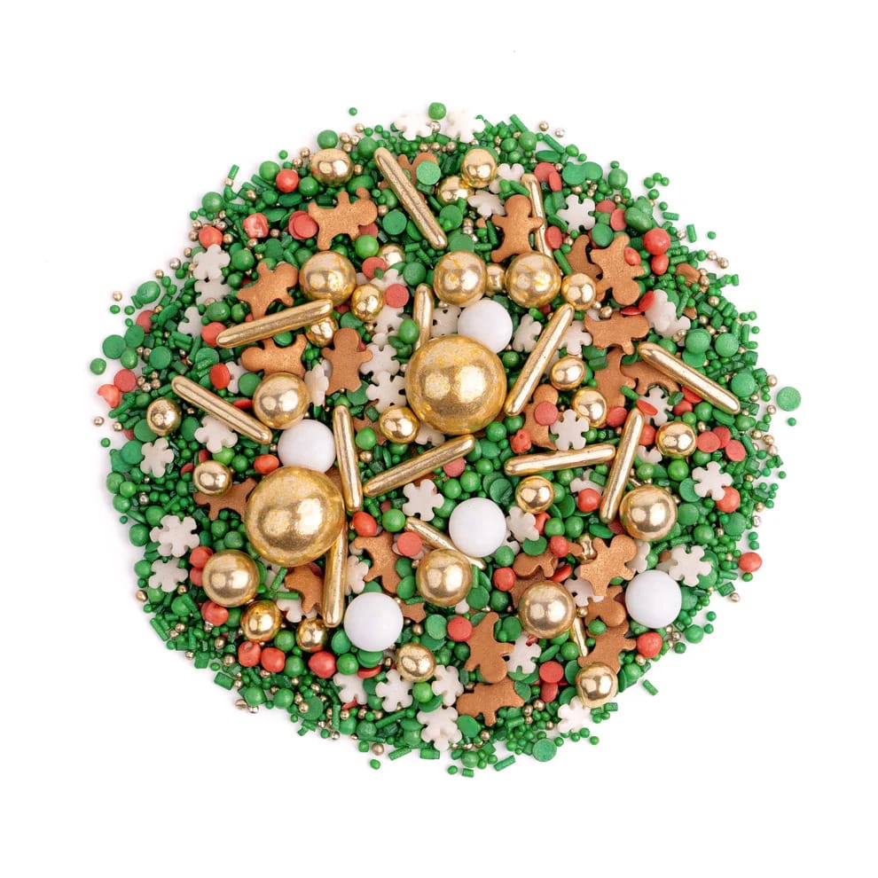 Świąteczny mix w intensywnych kolorach zieleni i czerwieni z pięknie kontrastującymi śnieżynkami i mini piernikowymi ludzikami! Posypka jest łatwa w aplikacji, idealnie nadaje się do dekorowania pierniczków, babeczek i tortów, tworząc magiczny, świąteczny efekt.