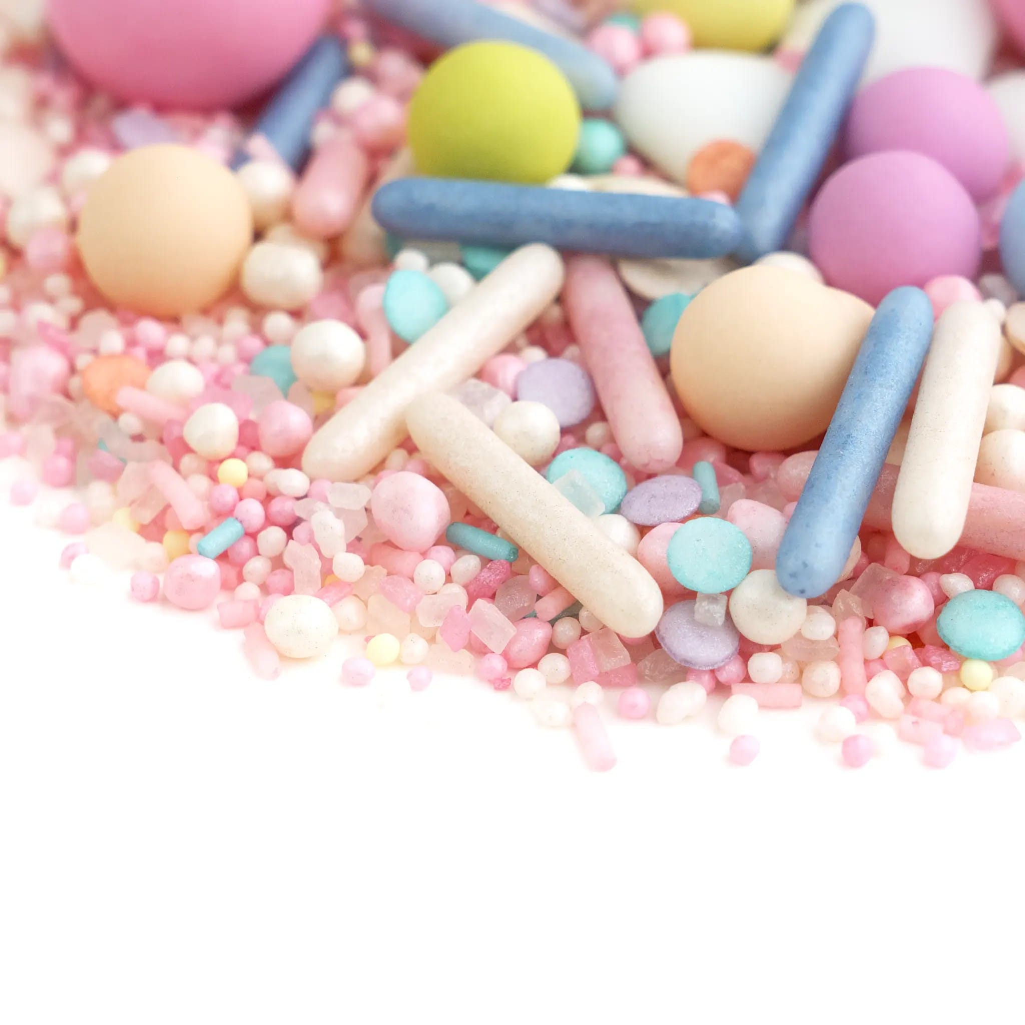 Mix z mnóstwem pastelowych elementów w odcieniach różu, fioletu i żółtego. Urocze połączenie które przywodzi na myśl puszystego, mięciutkiego króliczka. ? HONEY BUNNY nada Twoim słodkościom lekkiego, pogodnego charakteru i sprawi, że będą jeszcze bardziej apetyczne! Czekoladowe kule o matowym wykończeniu w kolorach wiosennej łąki są tak pyszne, że najczęściej znikają jeszcze przed ułożeniem ich na słodkościach. ?