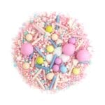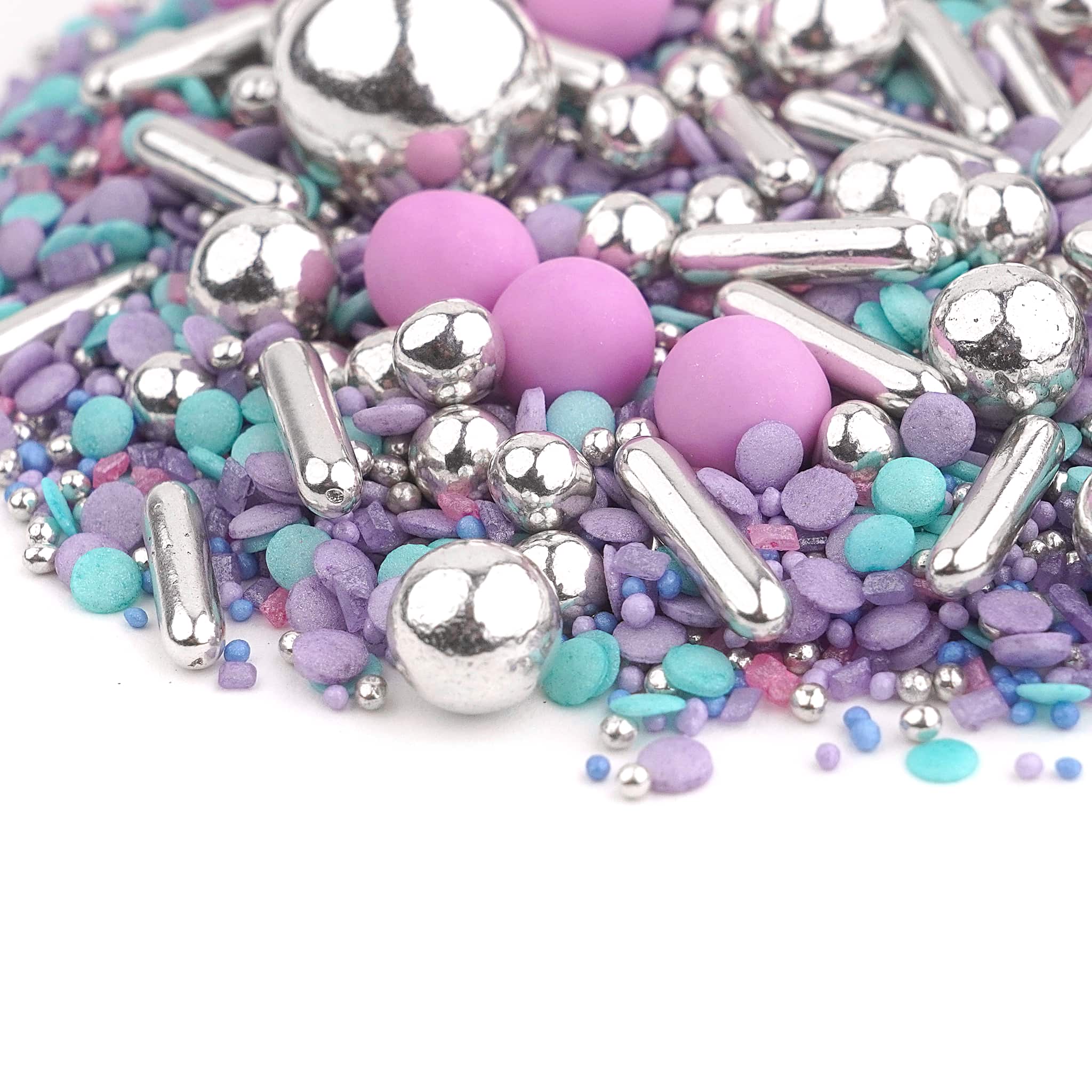 SHINY FLAKES to niespodziewany best seller w naszej kolekcji. Nieoczywiste połączenie kontrastujących ze sobą elementów i kolorów sprawia, że ta posypka szybko wpada w oko i zwraca na siebie uwagę. Posypka składa się głownie z confetti oraz bardzo drobnych perełek w intensywnym zestawieniu fioletu i turkusu. Całość zwieńczona jest zarówno błyszczącymi jak i matowymi elementami ozdobnymi. Czy wam także połączenie kojarzy się z karnawałem? ?