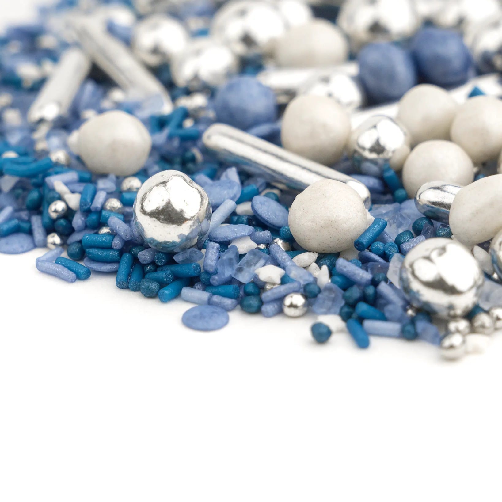 SKYLINE to pomysł na chłodny i stylowy błękit. Jest to bardzo oryginalna mieszanka w pięknym perłowo niebieskim odcieniu, ozdobiona pałeczkami i kulkami z czekoladą w lustrzanym srebrze. Żywa i błyszcząca niczym horyzont metropolii. Oczywisty wybór podczas dekorowania tortu dla chłopca bez względu na okazję. Komunia? Chrzciny? Może 9 urodziny? Ta posypka cukrowa to bez wątpienia strzał w dziesiątkę.