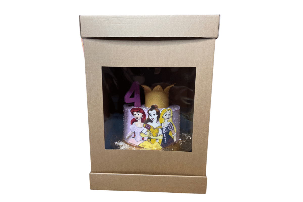 Składa się z obwoluty oraz dwóch wieczek – dolnego i górnego. Karton nadaje się do zapakowania np. wysokiego tortu piętrowego.