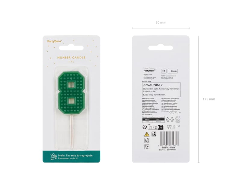 Napisz pierwszą opinię o „Świeczka na tort klocki Cyferka 8, 6cm, zielona”