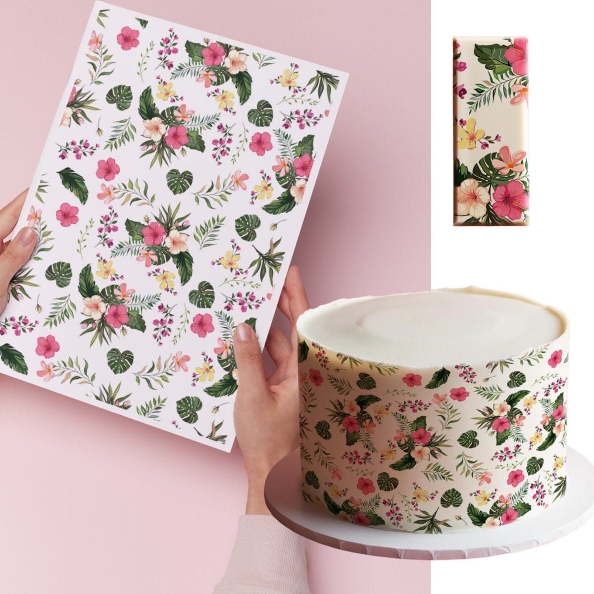 Stwórz egzotyczne dekoracje z pomocą jadalnej tapety w motywie tropikalnych kwiatów. Idealny wybór na letnie przyjęcia, urodziny, panieński czy tematyczne imprezy w stylu hawajskim. Wzór doskonale sprawdzi się na tortach dla kobiety, przyjaciółki, mamy lub miłośników wakacyjnych klimatów.