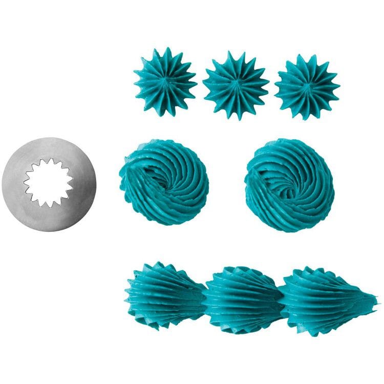Udekoruj gwiazdkami, kwiatami, muszlami i falami swoje torty i babeczki za pomocą tej dużej, otwartej tylki w kształcie gwiazdy. Idealnie nadaje się na eklery i ptysie.