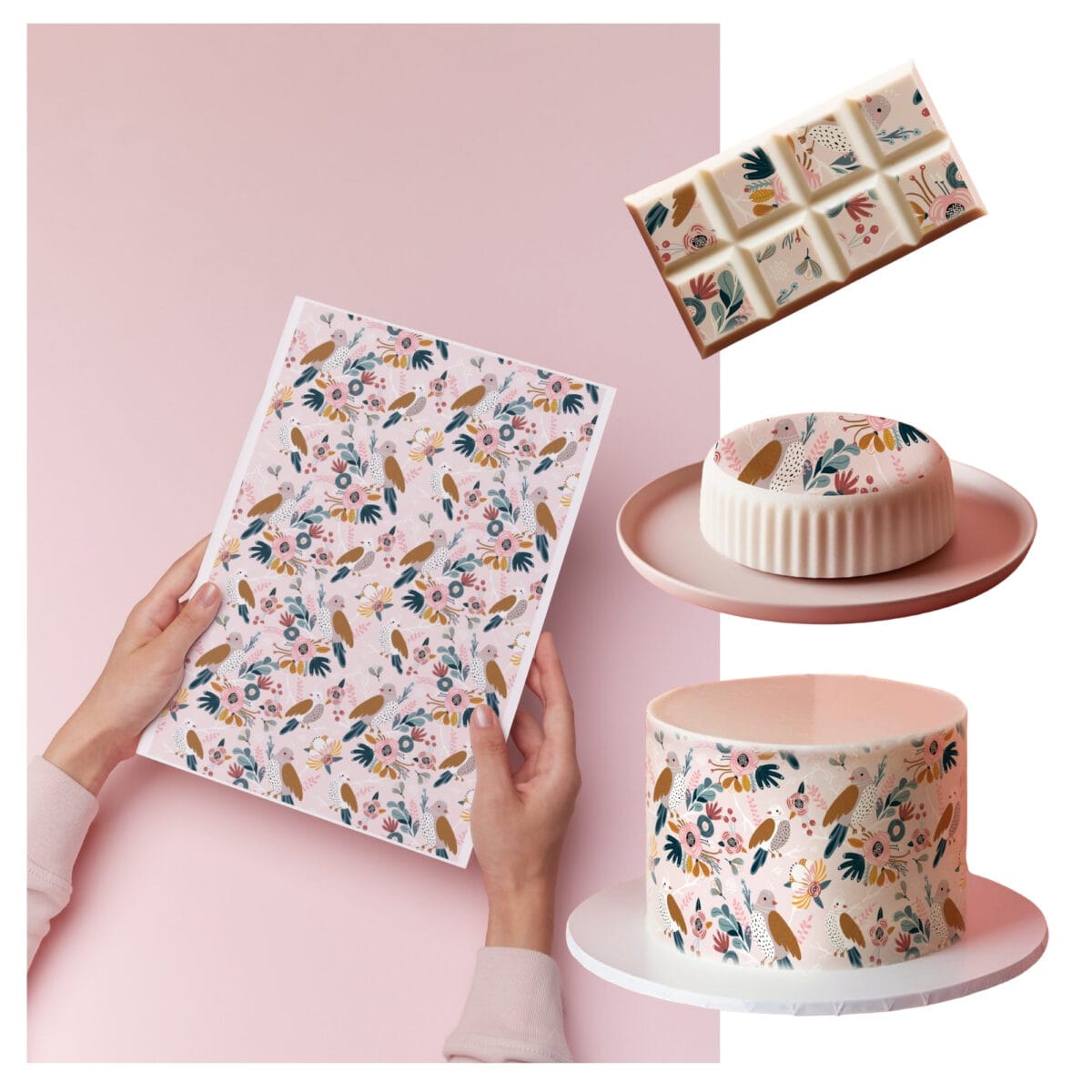 Wprowadź wiosenny klimat do swoich deserów dzięki wyjątkowemu wzorowi z ptakami wśród różowych kwiatów. Ten delikatny i elegancki motyw sprawdzi się idealnie na Dzień Kobiet, Dzień Matki, a także jako dekoracja wielkanocnych wypieków. Bezszwowy wzór umożliwia płynne łączenie elementów, zapewniając spójny i estetyczny efekt.